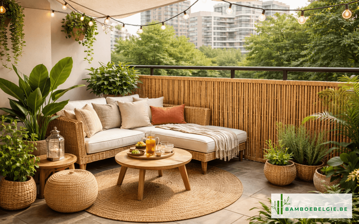 Standaard balustrades bieden veiligheid, maar weinig privacy of sfeer. Door bamboe tegen de bestaande reling te bevestigen, creëer je meteen een warme en natuurlijke uitstraling. Werk het eventueel af met een bovenlat voor een strak geheel.